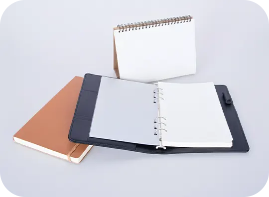 Cadernos personalizados para ações promocionais, treinamentos internos ou brindes, unindo funcionalidade e visibilidade de marca.